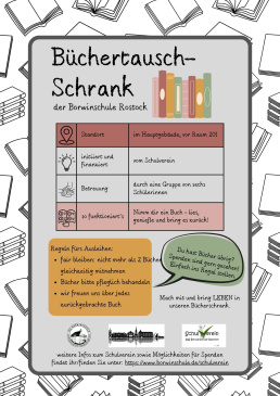 Im Hauptgebäude vor dem 201 steht seit einiger Zeit ein Büchertausch-Schrank. Und so funktioniert er: Nimm dir ein Buch, lies und bring es zurück!